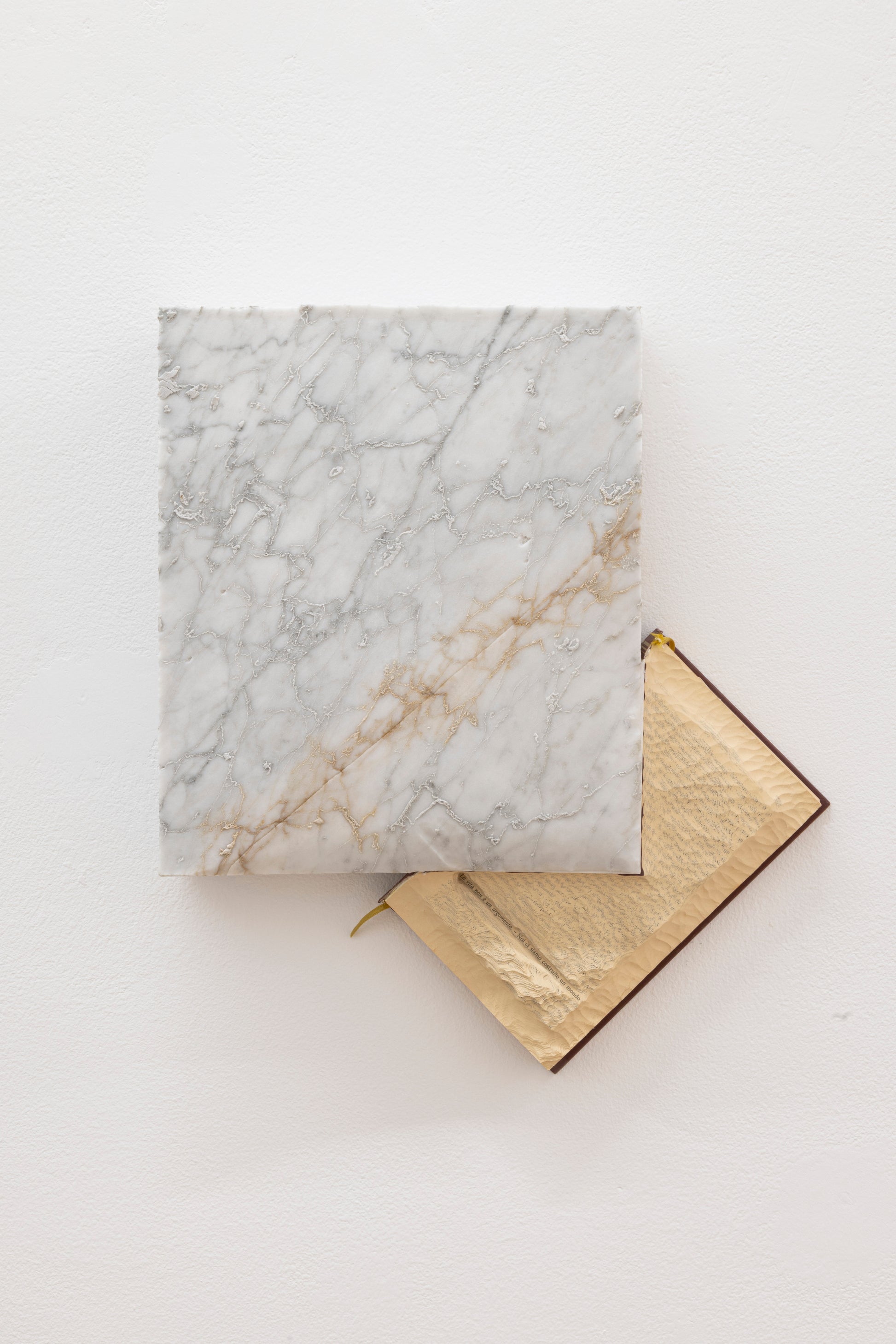 L'elemento principale delle sculture di Marco Cordero è un libro, un libro vero, di cui l'artista si appropria, ma rielabora: scavato, bruciato, strappato alla sua funzione di libro. Nel suo lavoro, il libro diventa un organismo vivente, un assemblaggio di materie che, grazie alla loro combinazione, acquistano un assetto vitale. In questa serie di lavori, Marco Cordero lega il destino dei suoi libri alla roccia, alla pietra e al marmo. Questa combinazione dà origine a ibridi sorprendenti: libri come rocce o rocce come libri.