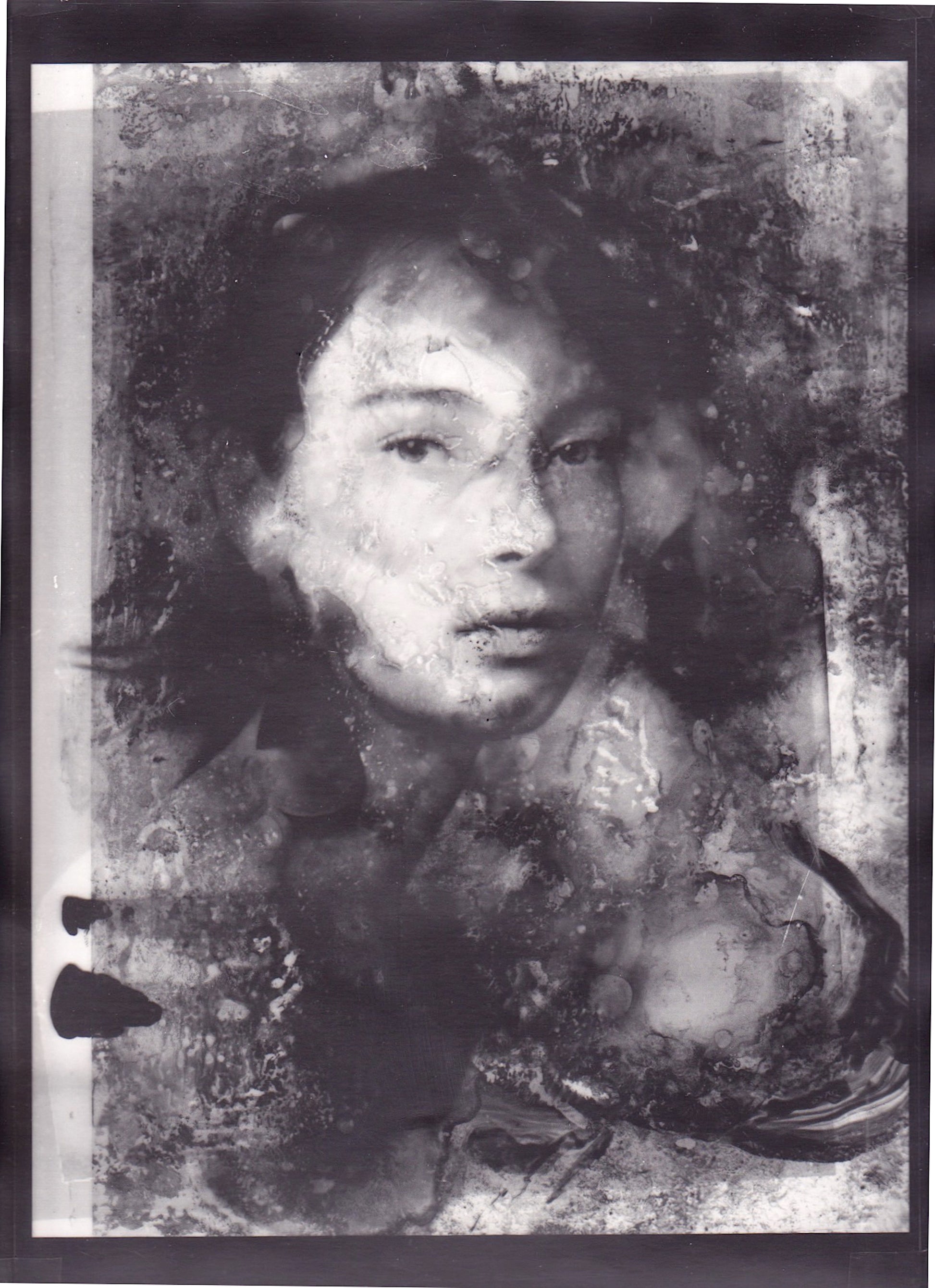 La serie Mirror può essere considerata un’integrazione tra fotografia e pittura. Le immagini vengono create e costruite a partire da trasparenze stampate o dipinte, poi sovrapposte. Queste vengono invertite, diventando a tutti gli effetti dei negativi che, in camera oscura, impressionano la carta fotografica per contatto. Il risultato di questo elaborato procedimento è un’opera d’arte, una fotografia orientata verso la dimensione della pittura. La superficie non è quindi un elemento statico, ma un luogo dinamico, in cui i soggetti fotografati sono esposti a una metamorfosi e si trasformano.