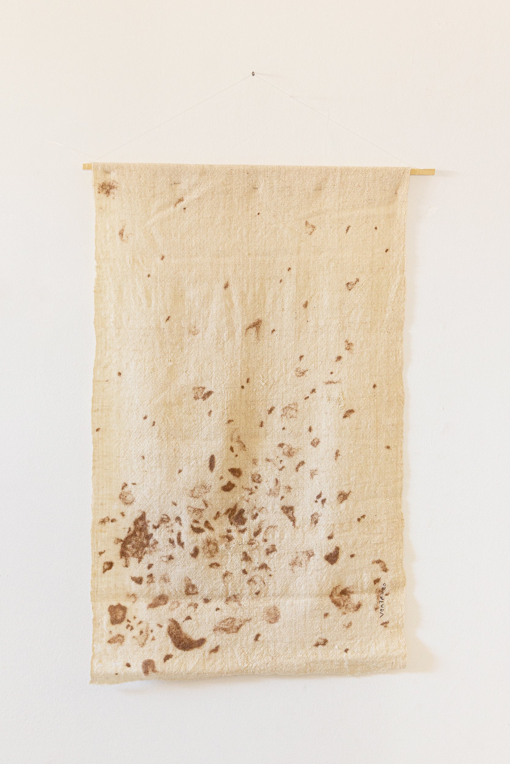 Dall’onda sonora del canto del benteveo, l’artista ricava sagome che si concretizzano in opere realizzate con lana naturale attraverso l’antica tecnica dell’infeltrimento ad ago. Le forme – leggere, sospese, vibranti – si dispiegano su supporti diversi, come tessuto e carta, componendo un paesaggio immersivo e poetico.