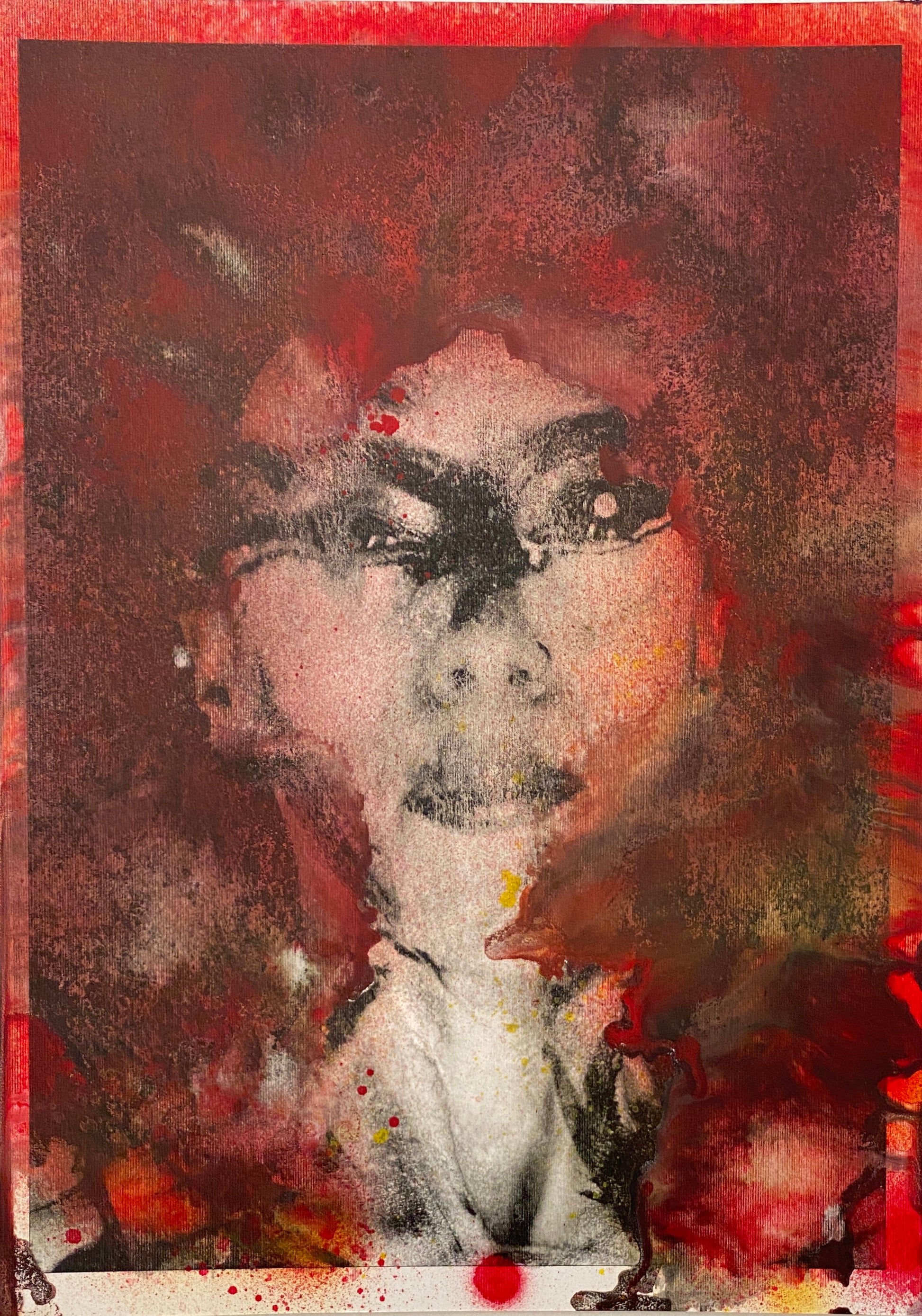 Photographic print retouched by hand with enamels and synthetic thinners on Fedrigoni stucco watercolor paper 300 gr