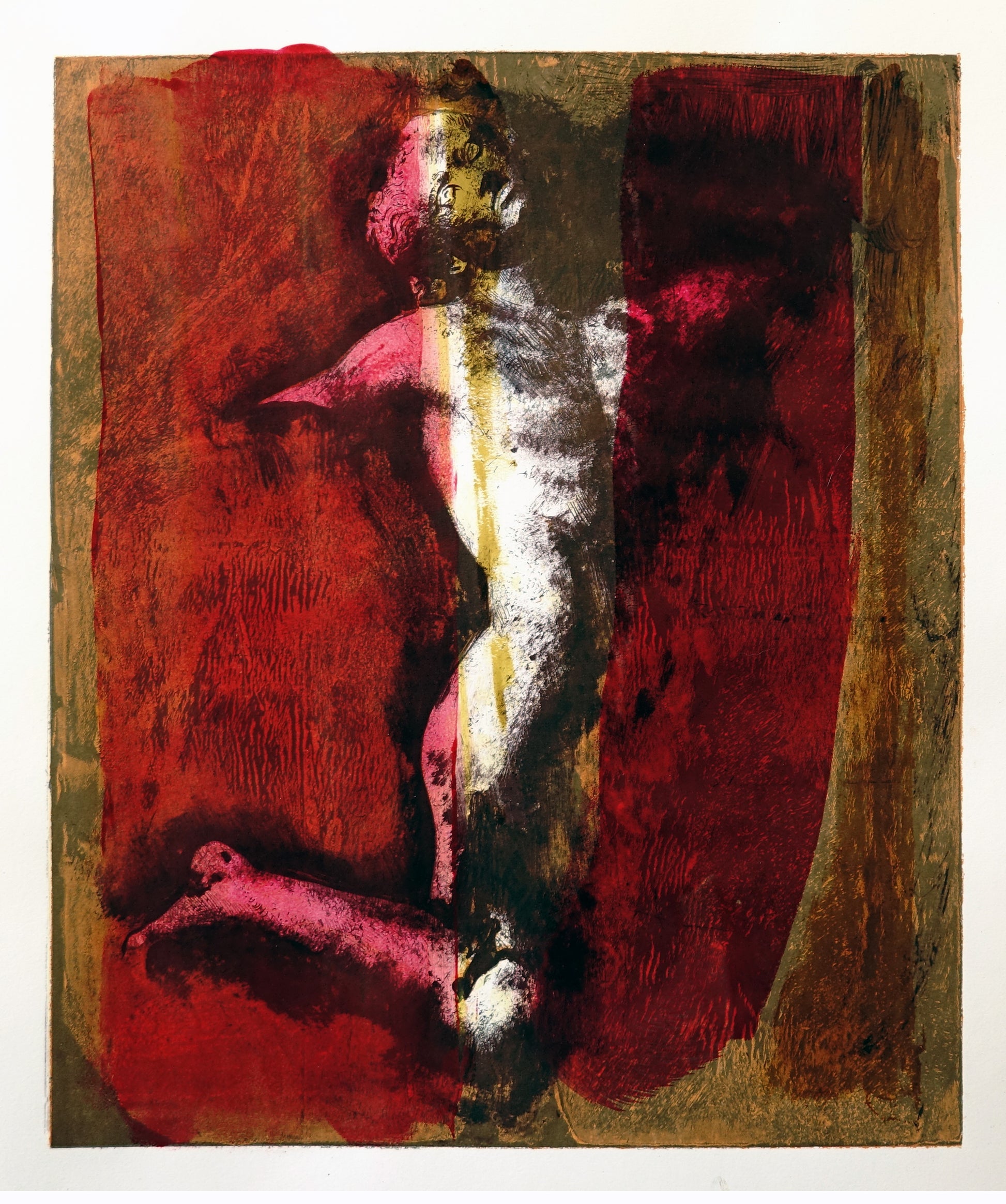 The image in this series of lithographs – Satiro di Mazara (Satyr of Mazara) – refers to the Greek sculpture of the Dancing Satyr. The work was accidentally discovered in 1998 by a fishing boat in the depths of the Strait of Sicily, between Pantelleria and Africa. Today it is preserved in the museum of the same name in Mazara del Vallo. A few years ago, the artist went to admire it up close, before her definitive return to the island. The emotion and sense of mystery that still surround the bronze long occupied her thoughts. From this first came a large painting, followed by a series of lithographs that include new signs and new words, as if to awaken and emphasize the wonder that has never faded before this ancient masterpiece.