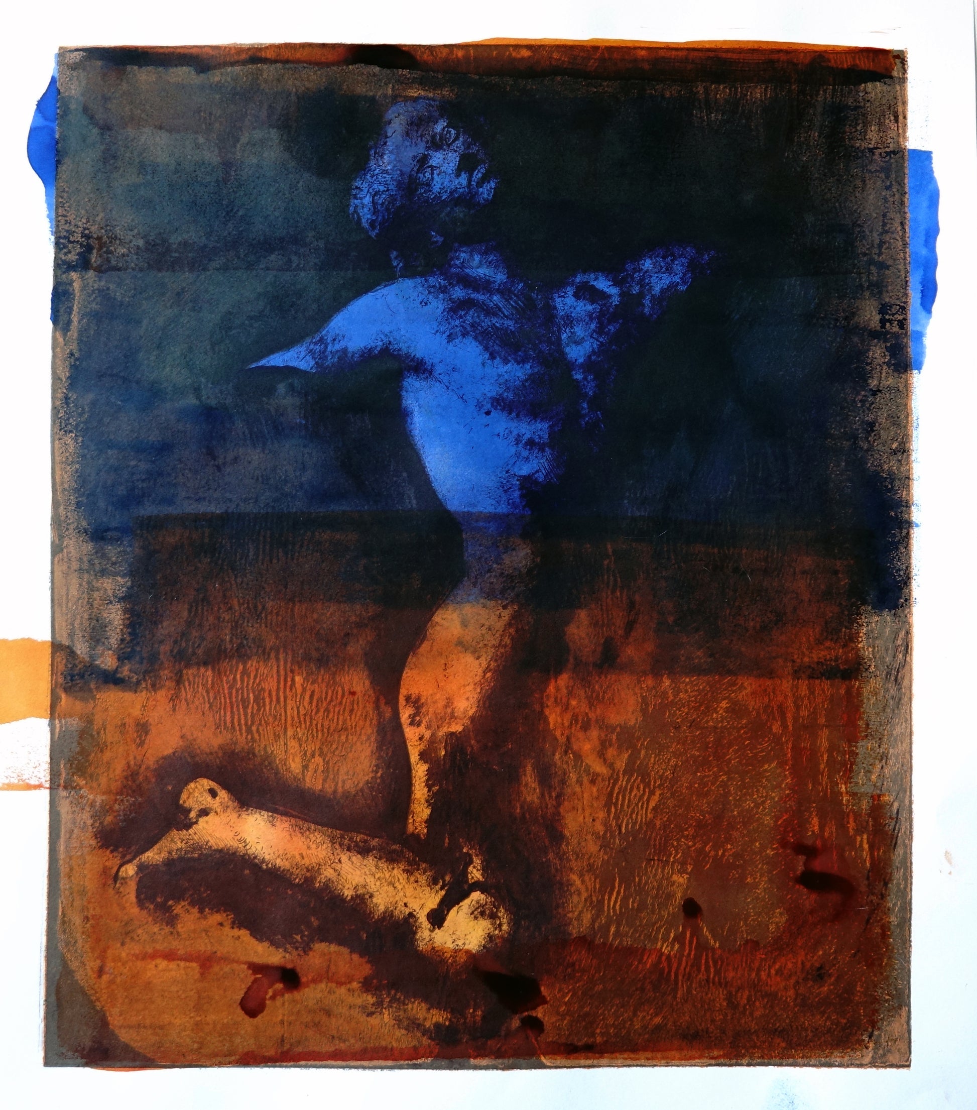 Lithograph with oil painting and pastels