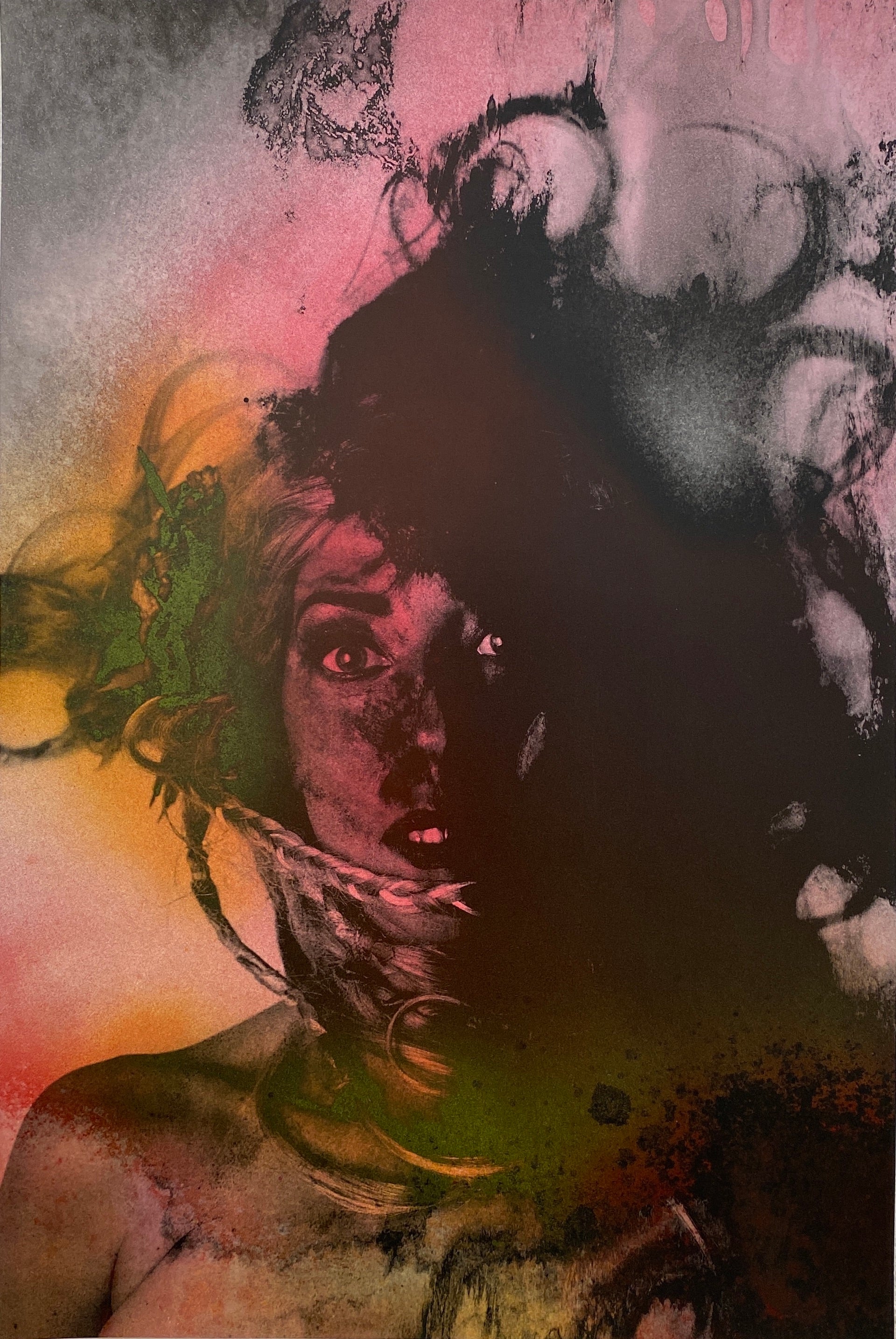 Stampa fotografica ritoccata a mano con smalti e diluenti sintetici su cartoncino International Paper ProDesign 300 gg